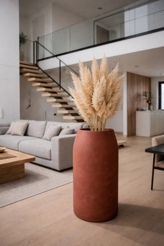 Donica EPOCCO MIDL charakteryzuje się imponującymi wymiarami - ma wysokość wynoszącą 70 cm oraz średnicę 38 cm. Dzięki temu pomieści większe rośliny doniczkowe lub drzewka bonsai, dodając imponujący akcent dekoracyjny do przestrzeni mieszkalnej czy biurowej. Duża powierzchnia pozwala na swobodne układanie ziemi oraz eksponowanie roślin w sposób atrakcyjny i estetyczny.