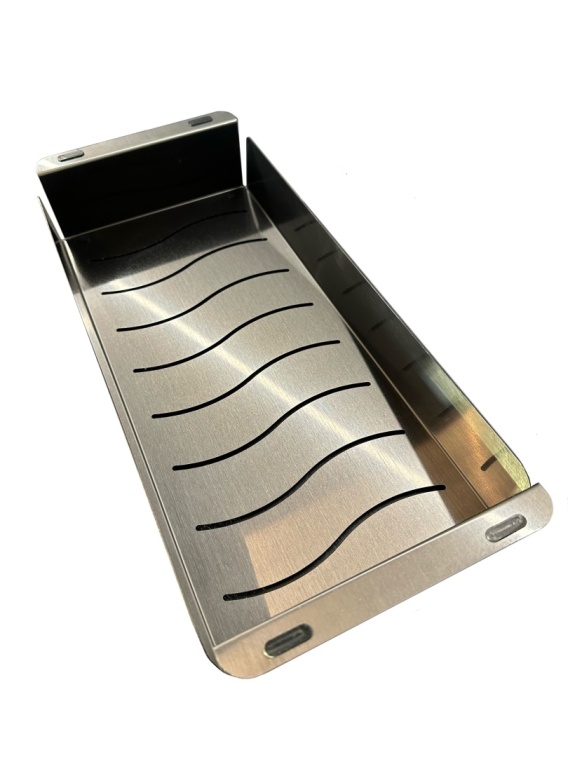 Funkcjonalny i elegancki koszyk do zlewozmywaka, który doskonale łączy nowoczesny design z praktycznym zastosowaniem w każdej kuchni. Dzięki wyprofilowanym rowkom umożliwia efektywne odprowadzanie wody z naczyń, sztućców czy garnków, zapewniając szybkie schnięcie i utrzymanie porządku wokół zlewu. Może pełnić również funkcję durszlaka, w którym szybko i wygodnie umyjesz warzywa czy owoce.